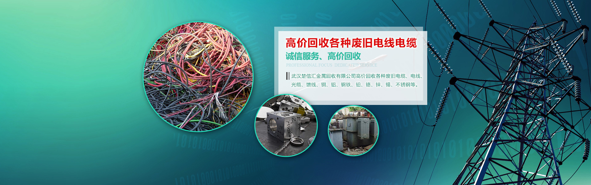 武漢楚信匯金屬回收有限公司高價(jià)回收各種廢舊電纜、電線、光纜、饋線、銅、鋁、鋼鐵、鉛、鉻、鋅、錫、不銹鋼等。   1、承接大型樓房、酒店拆遷工程,廠房搬遷及搬遷前的廢舊拆除工程   2、長(zhǎng)期回收各類空調(diào),酒店不銹鋼廚房設(shè)備,舞廳音響設(shè)備,企事業(yè)單位的機(jī)電、機(jī)床設(shè)備,庫(kù)存積壓產(chǎn)品以及 各種清倉(cāng)報(bào)廢物資。   3、各種管件、電纜、電機(jī)、電瓶、電動(dòng)工具。   4、報(bào)紙、書本以及成品或半成品廢料。   我們出價(jià)合理:廢舊金屬行情經(jīng)常變化,價(jià)格時(shí)升時(shí)降,我們把握實(shí)時(shí)的市場(chǎng)行情,給您提供新的價(jià)格信息。以合理的價(jià)格,變廢為寶!一個(gè)電話便可為您提供回收,拆除清場(chǎng),一條龍的優(yōu)質(zhì)服務(wù)!‘免費(fèi)上門看貨,免費(fèi)評(píng)估’ 聯(lián)系電話:13971365360 林先生 QQ:934406246   本公司專業(yè)從事庫(kù)存積壓處理物資的買賣,廢舊物資的回收,機(jī)電設(shè)備,五金電料,日用百貨,服裝布料,廠礦車間的所有機(jī)械設(shè)備 的回收,以及破銅爛鐵等金屬物品的回收。總之,從事所有有價(jià)值物品的收購(gòu)和處理。常年高價(jià)上門收購(gòu):電腦,電視,冰箱,冰柜,家具,交通工具(如自行車,電動(dòng)車,摩托車等),酒店餐館設(shè)施,餐具和灶具等。價(jià)格肯定 高于小商販的價(jià)格。